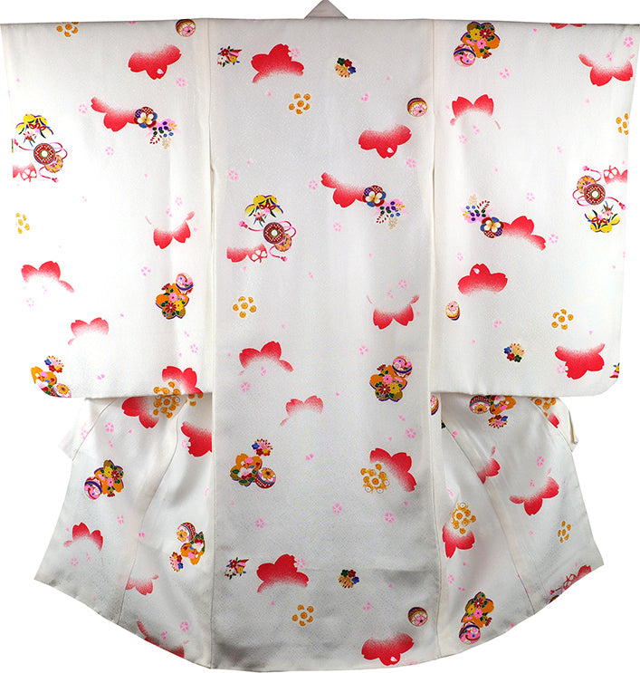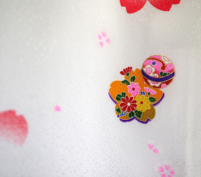 やさしい白地に、可愛らしい小花を散りばめた上品な祝着。