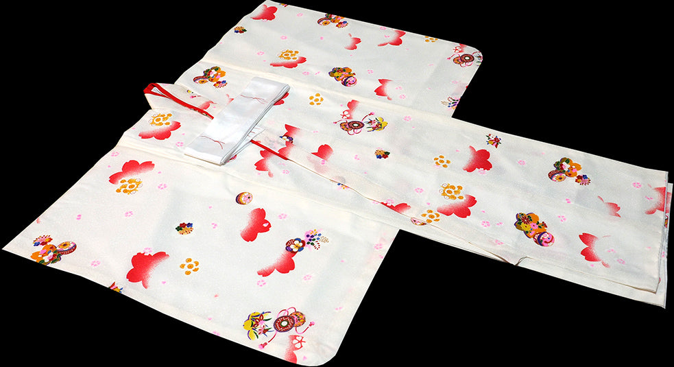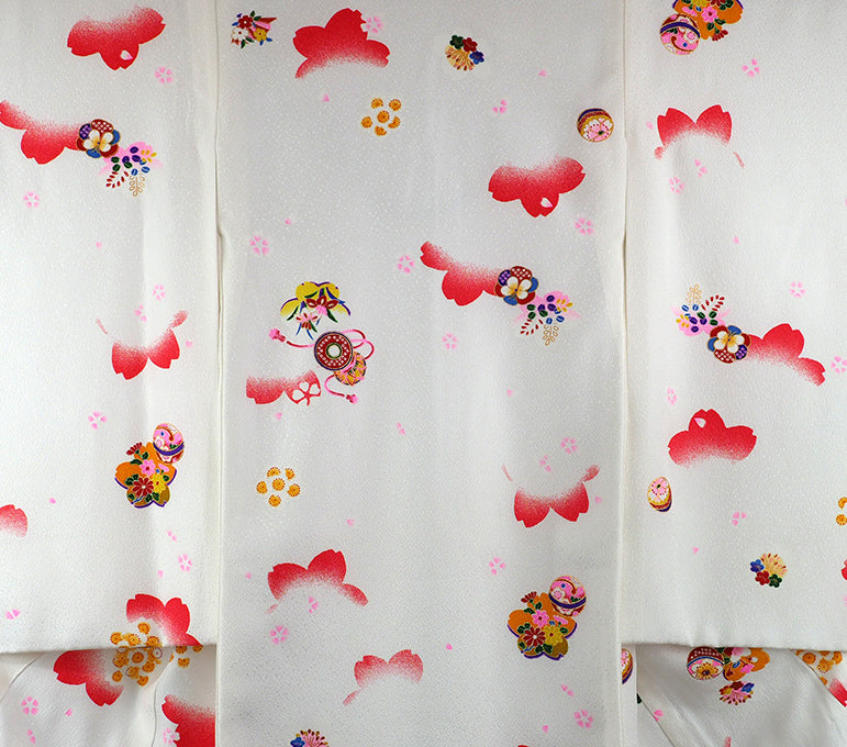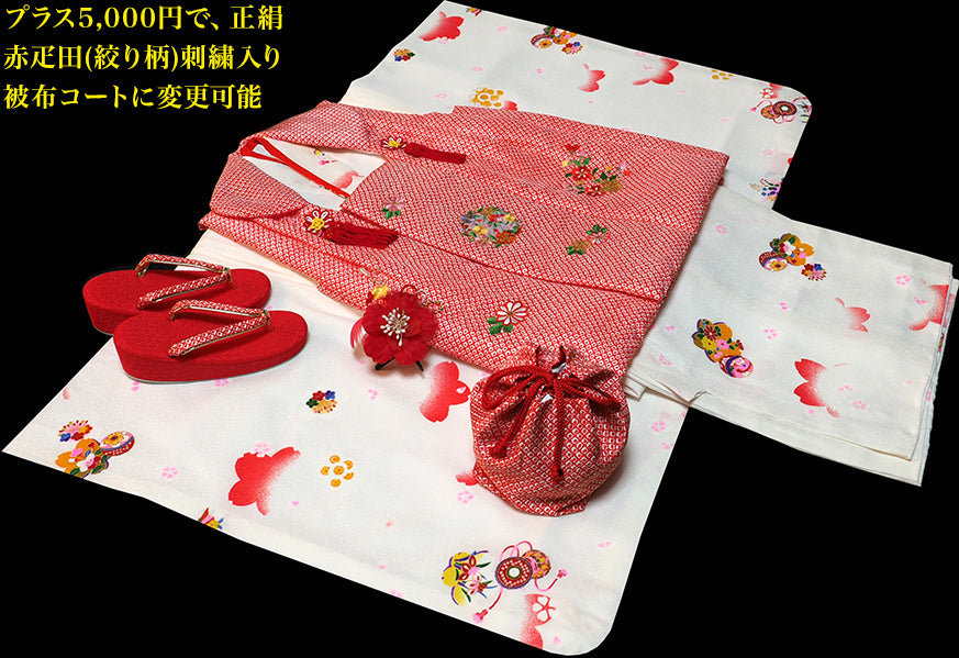 お着物は、お宮参りと七五三で使える、七五三仕様になっております。