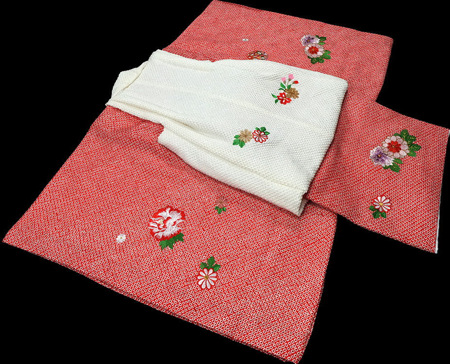 お宮参り 着物 女の子 正絹 祝着 初着 産着 のしめ 絞り 新品 j907