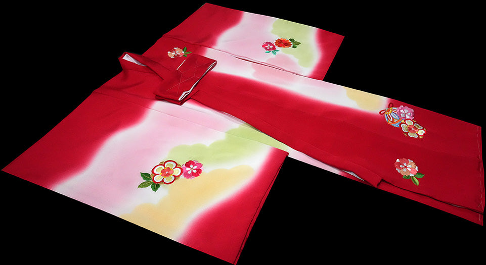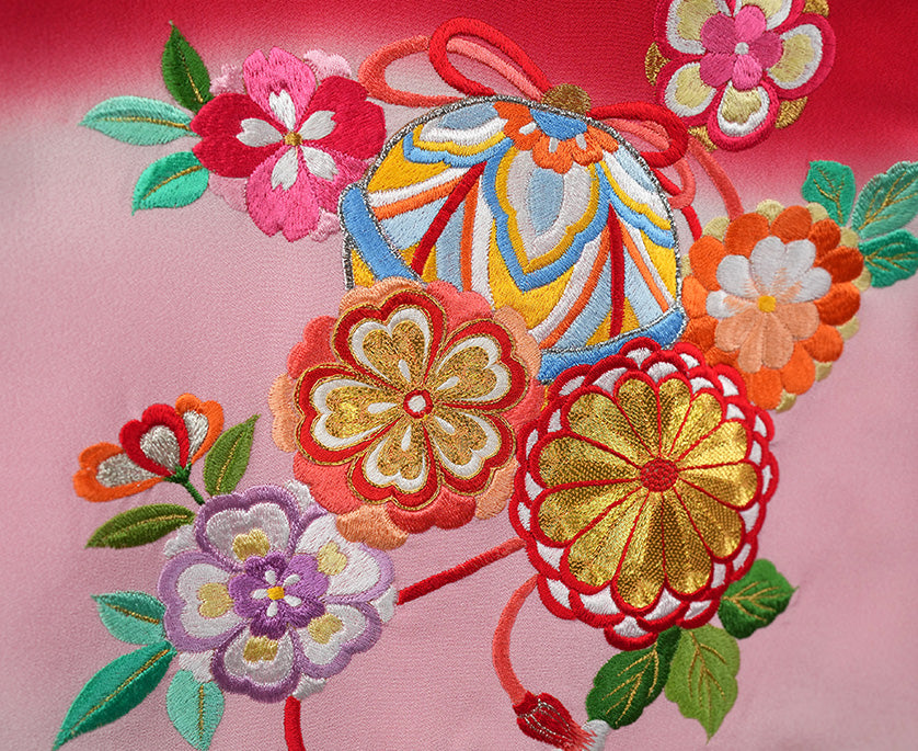 鮮やかな赤と優しいピンクのグラデーションが美しい地に、