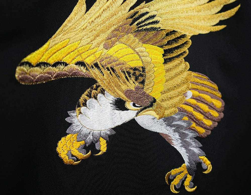 黒地に金糸を使った黄金の鷹、金の鋭い爪が勝手に