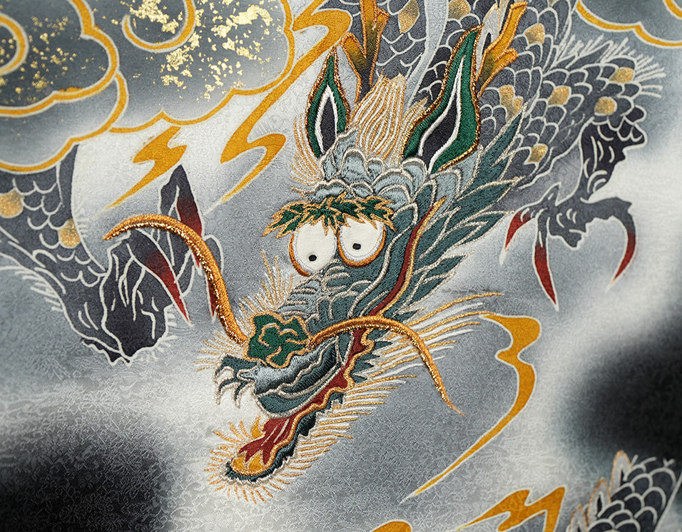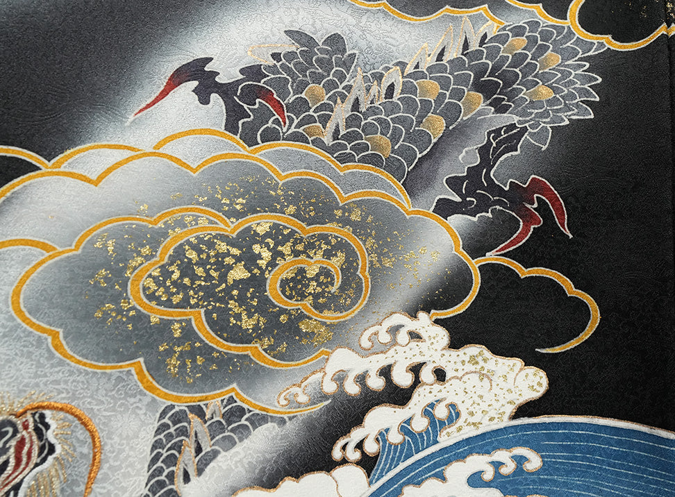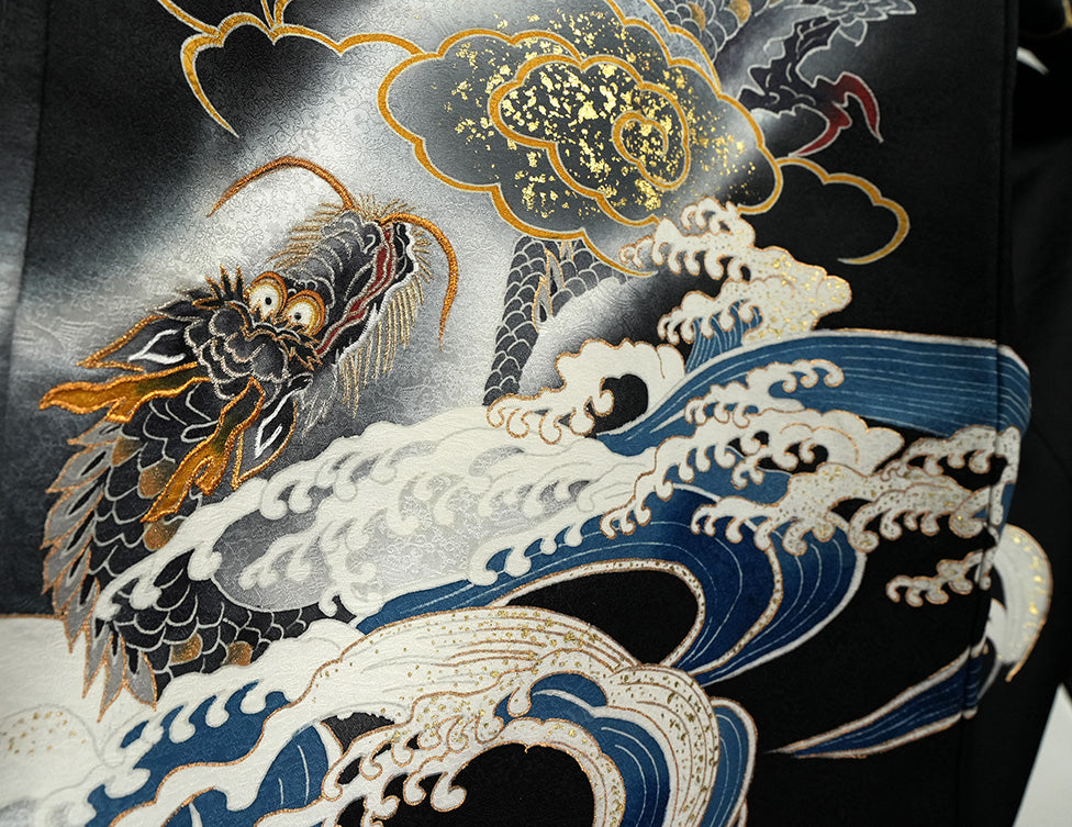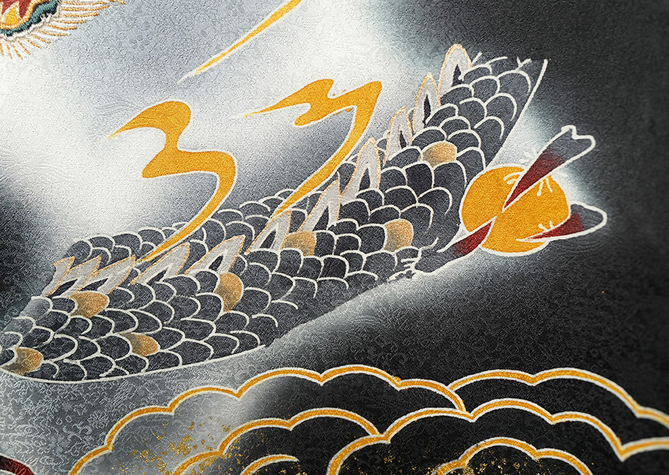 深く美しい黒地に、天翔ける「龍」を大胆に描いた、