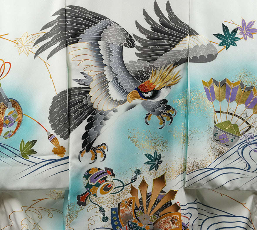 鷹の一部には刺繍が施され、立体感と上質感のある仕上がり。