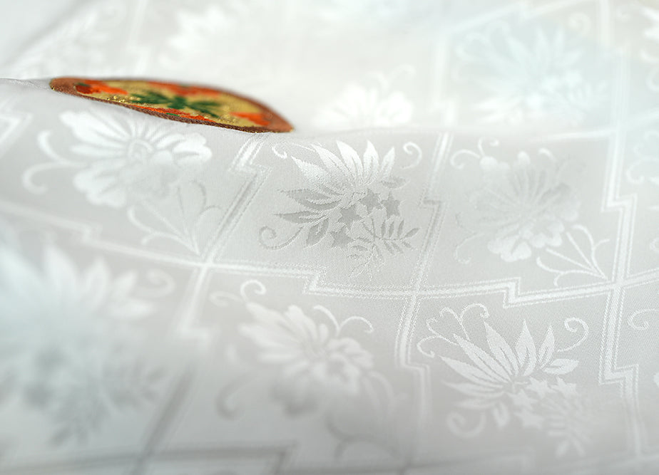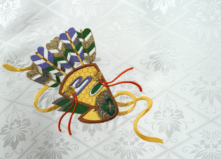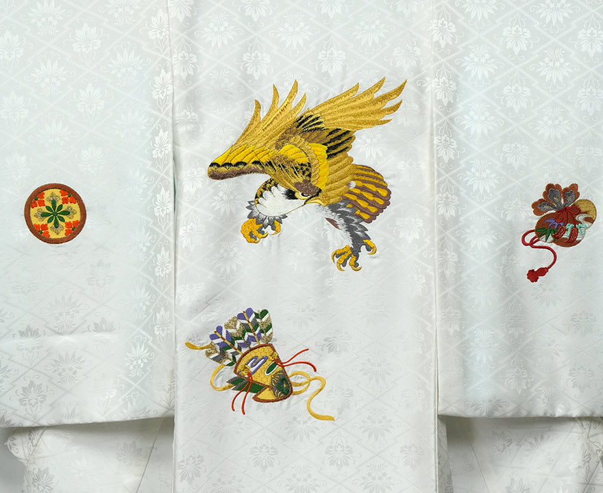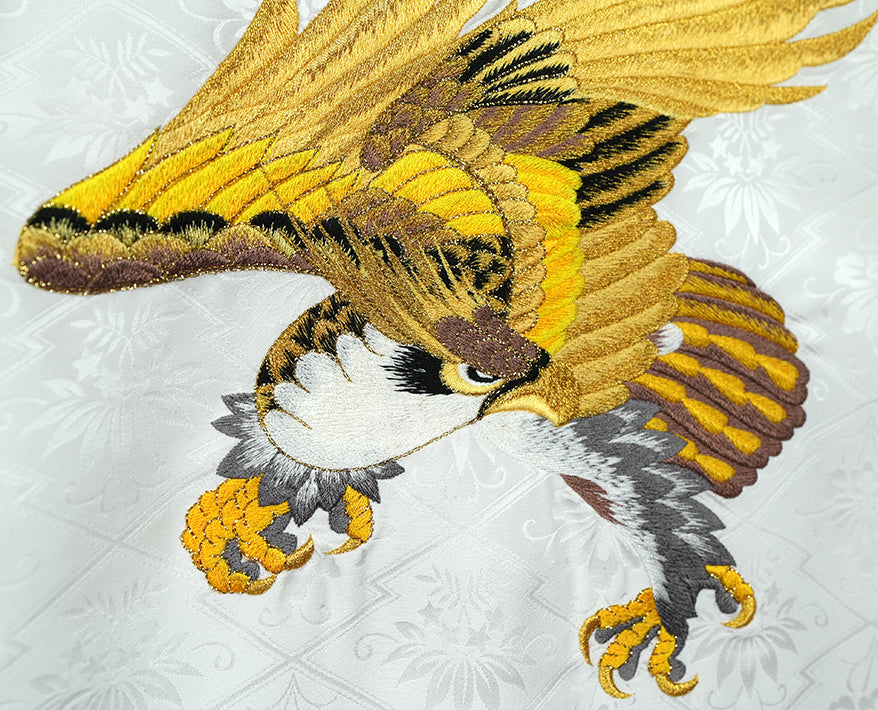 白地に金糸で表現された黄金の鷹が美しく映え、気品ある仕上がり。