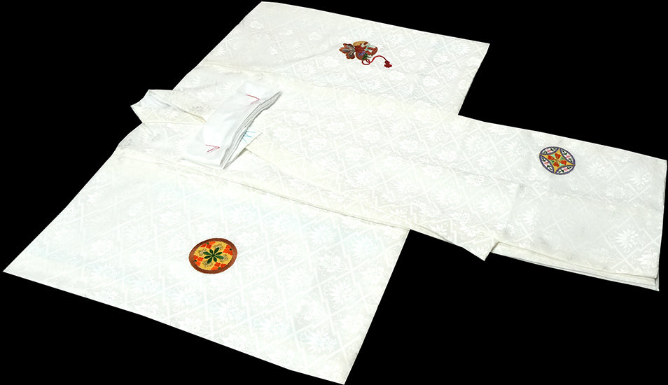 上質な正絹綸子生地に、総刺繍を施した男の子用お宮参り着物です。