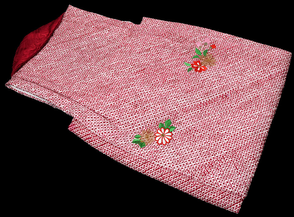 丁寧な手仕事で仕上げられた「正絹・えんじ色絞り」
