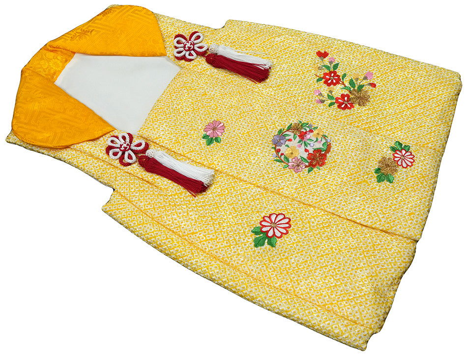 黄色鹿の子絞りの被布コート 一粒一粒、