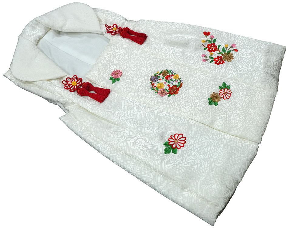 七五三 3歳 女の子 正絹 白 被布コート 小花刺繍 新品ht202