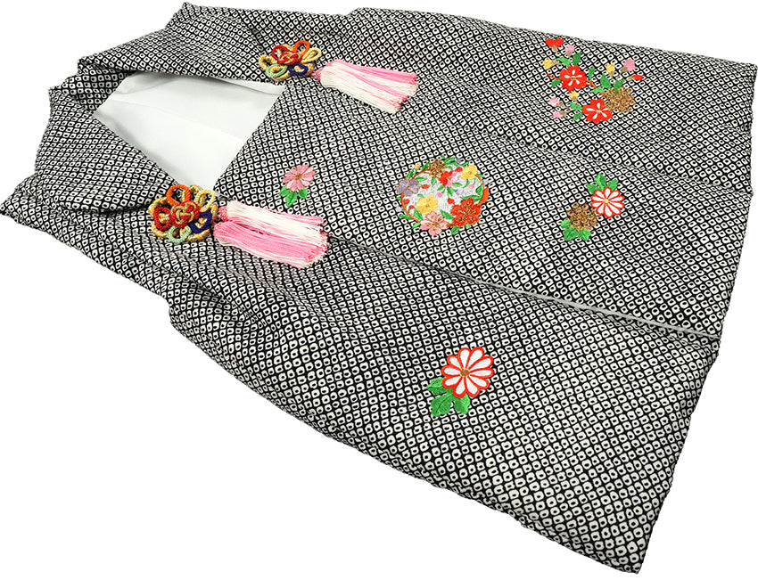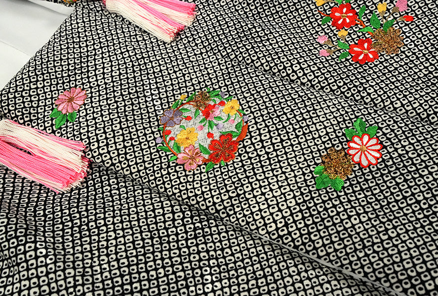 黒地に映える小花の刺繍が、お子様の晴れ姿をより一層引き立てます。