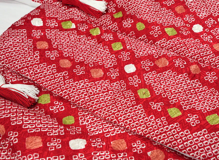 丁寧な手仕事で仕上げられた「正絹・赤鹿の子絞り」