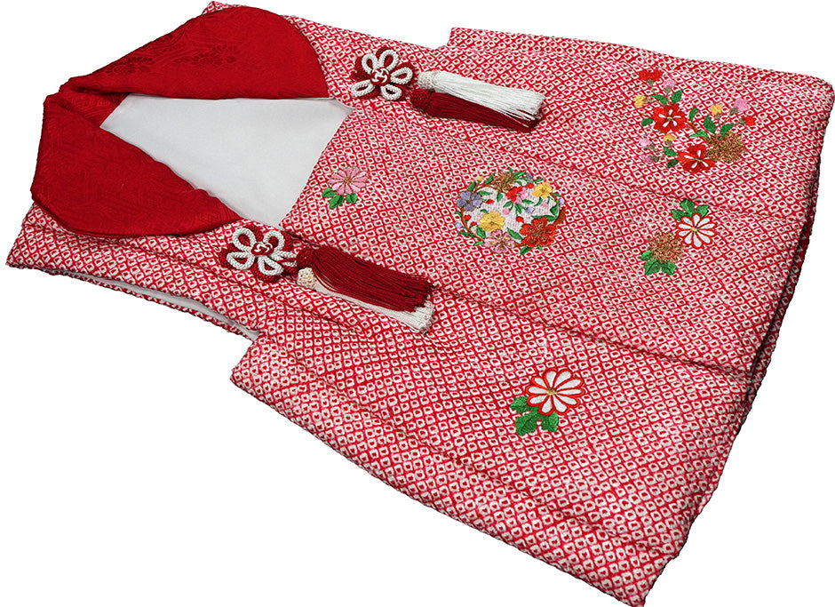 七五三 3歳 正絹 被布コート 女の子 赤 絞り 刺繍入り S寸 ht338